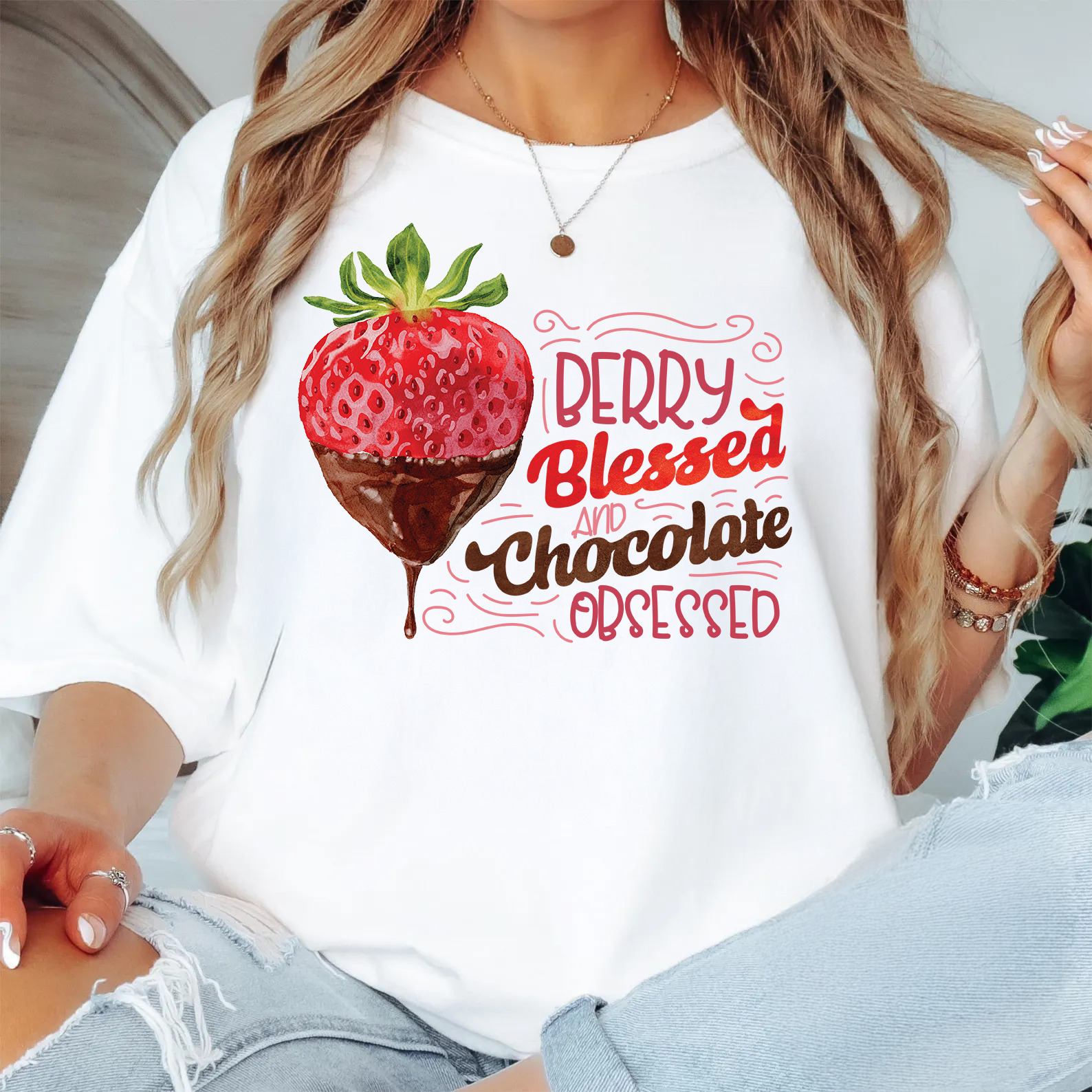 Berry Blessed and Chocolate Obsessed Valentine’s Day Shirt | Chocolate Strawberry Tee