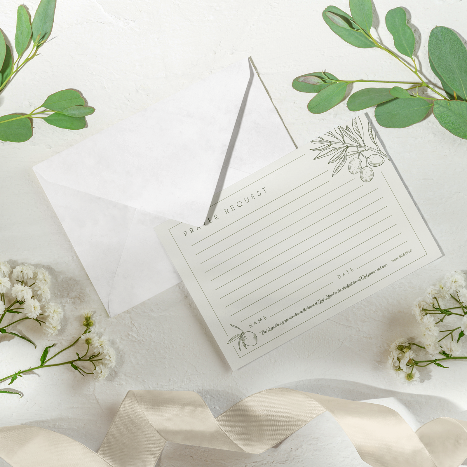 Elegant Prayer Request Cards | Double-Sided Christian Stationery with Olive Branch Design | Spiritual Encouragement & Religious Gifts