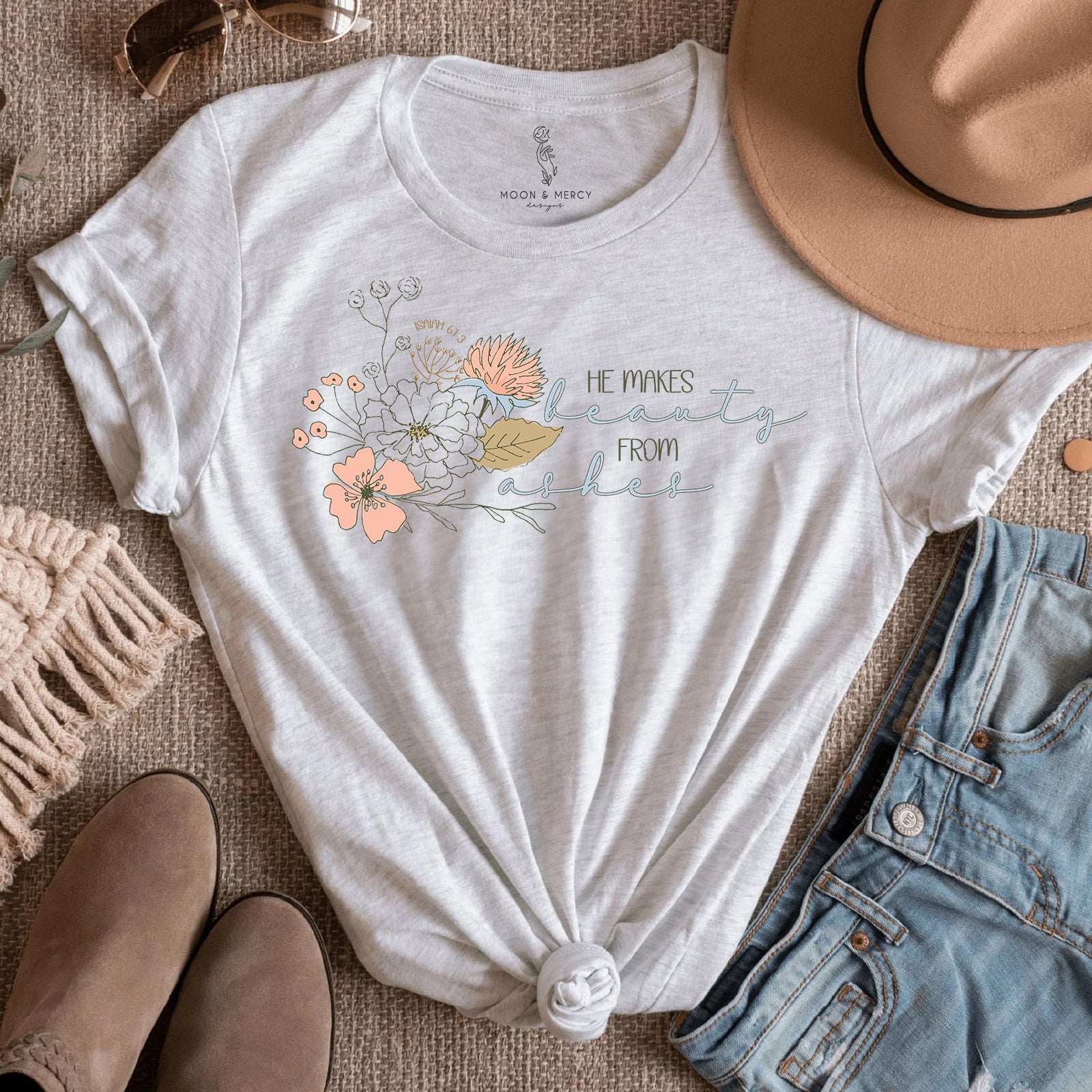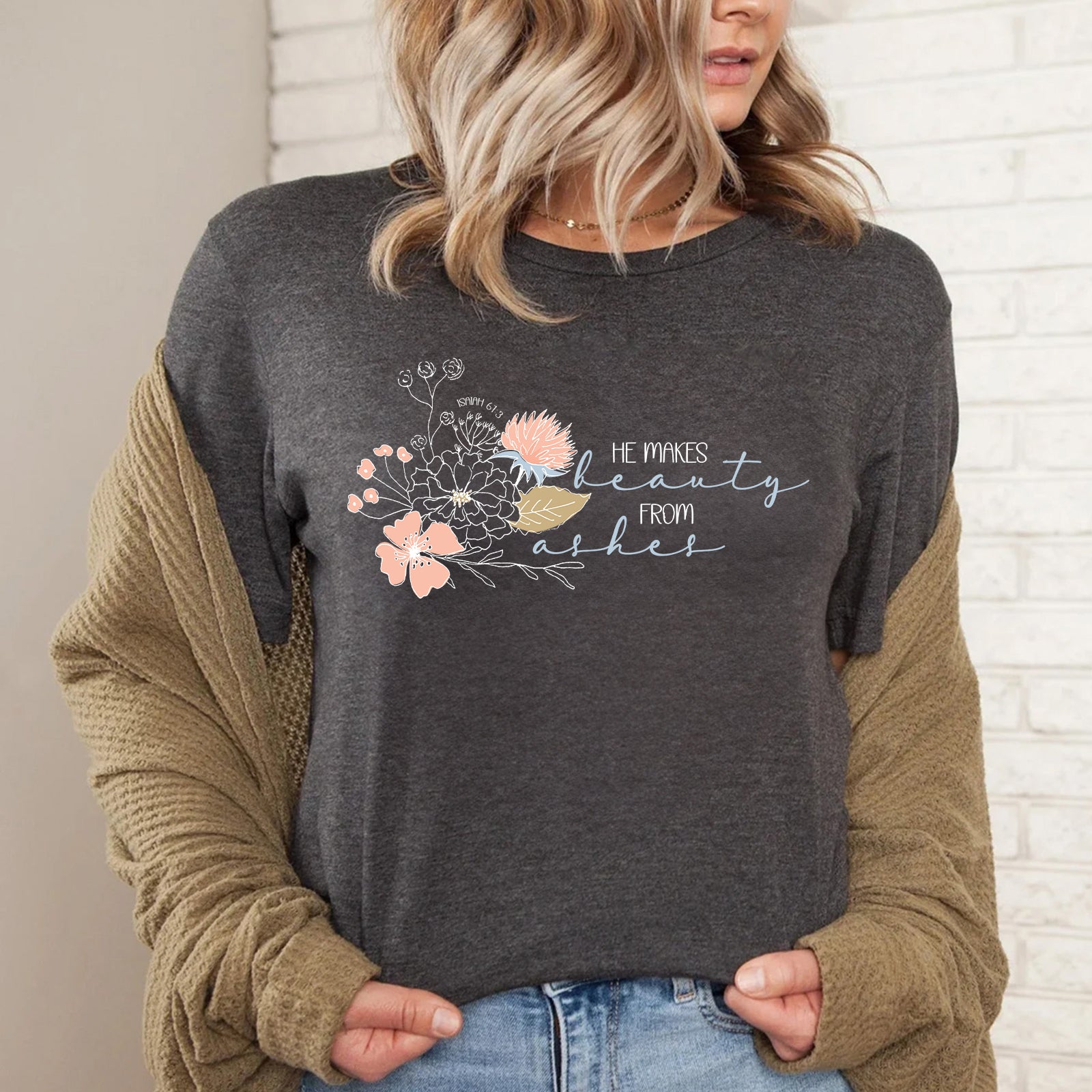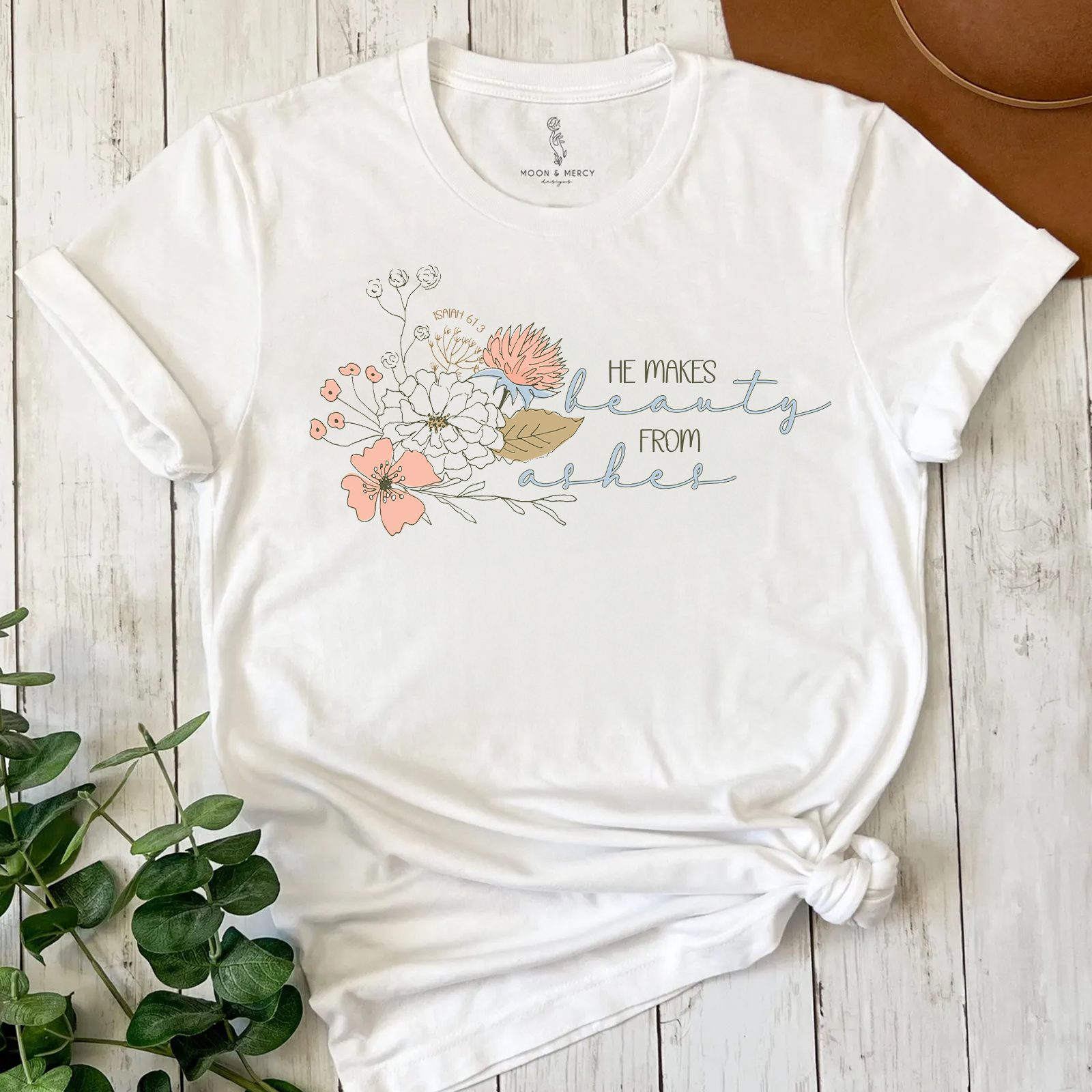 He Makes Beauty from Ashes | Isaiah 61:3 Floral Christian Shirt