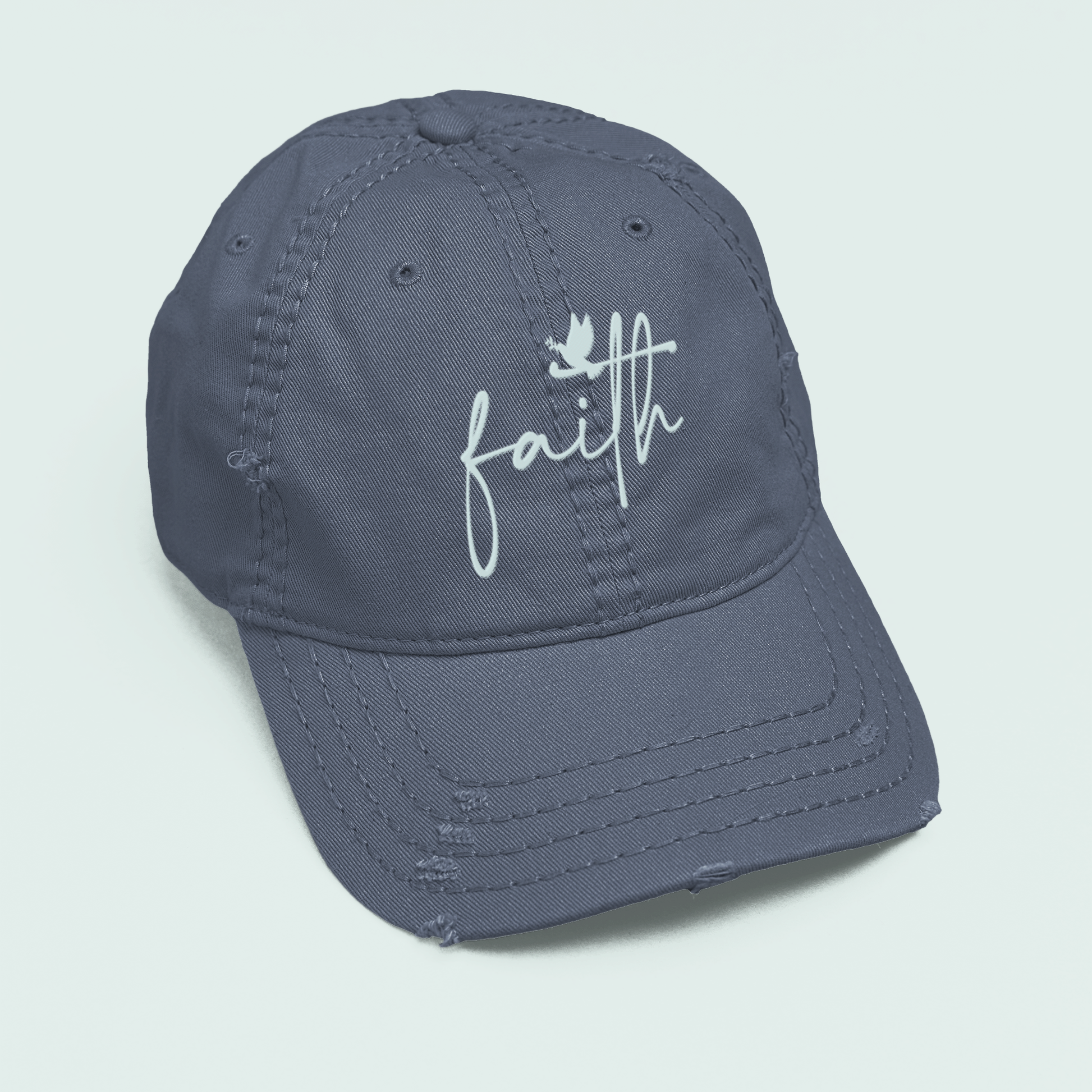 Minimalist 'Faith' Designed Distressed Cap | Christian Gift Idea | A Gentle Reminder of Faith