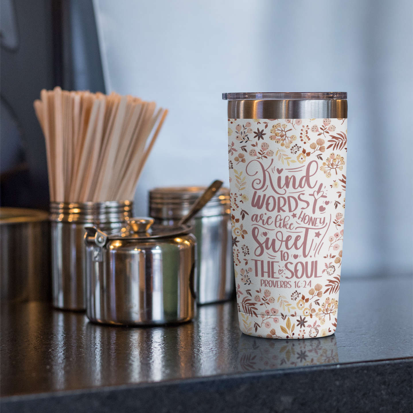 Sweet Words Are Like Honey Floral 20oz Stainless Steel Tumbler | Faith Drinkware for Her